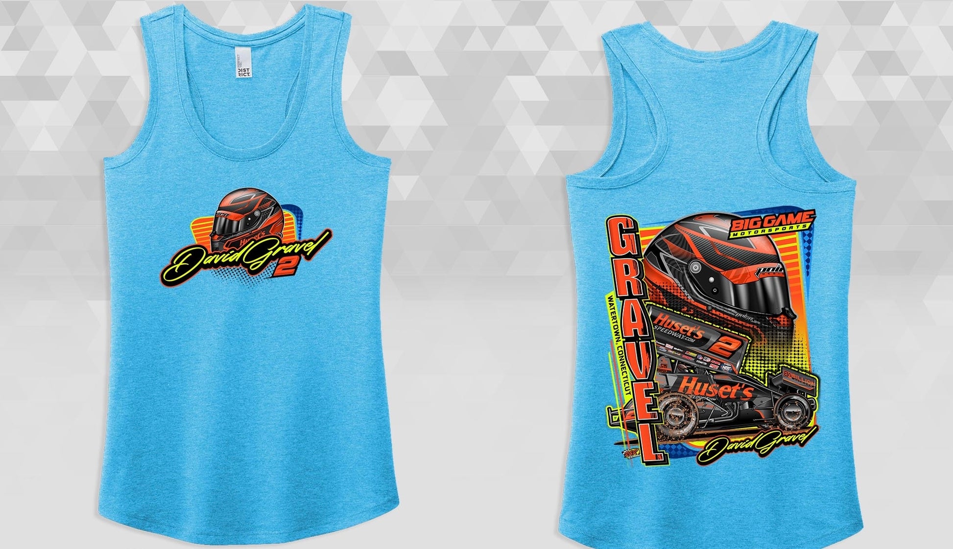 Printed on a District Women's Perfect Tri Racerback Tank in the color Turquoise Frost